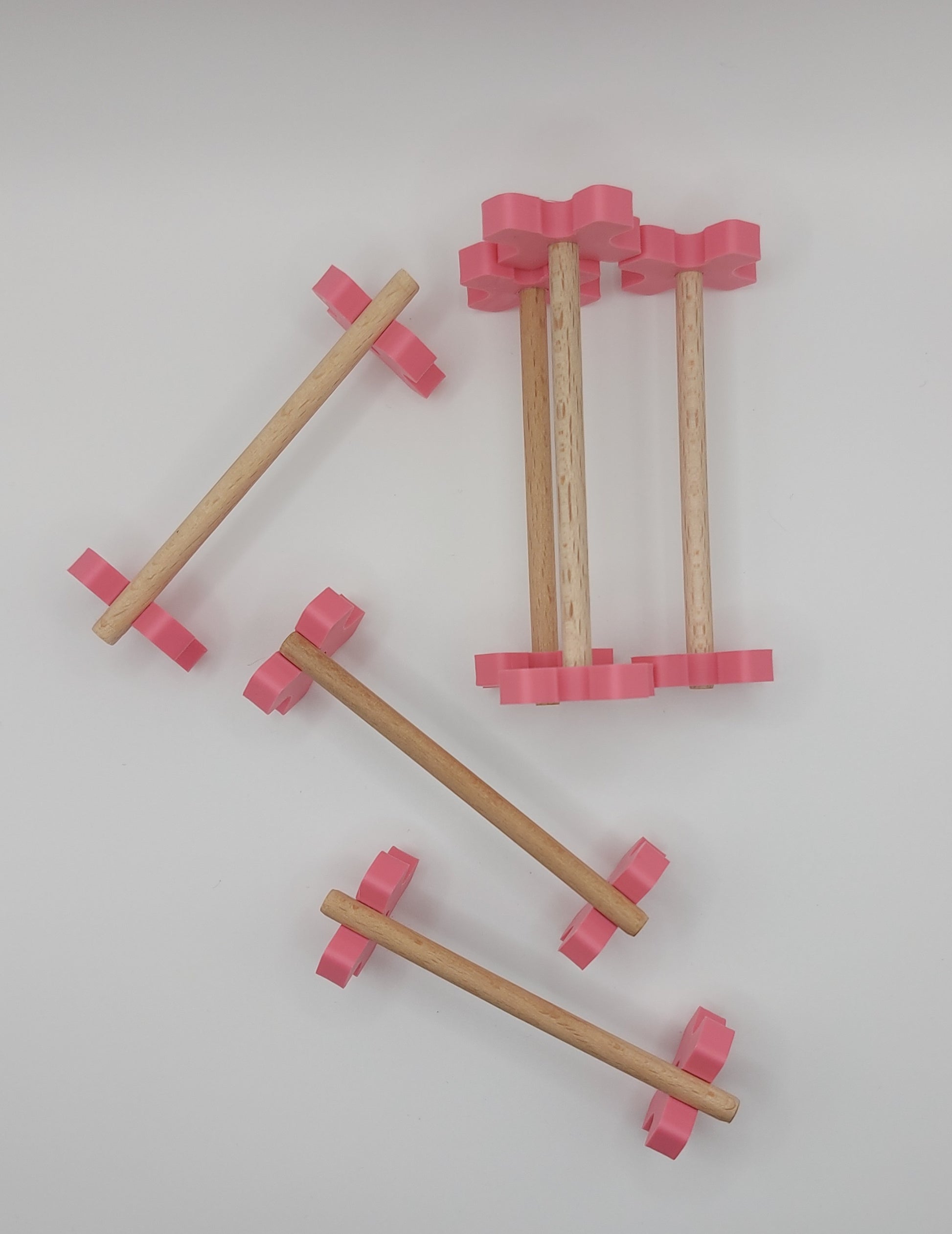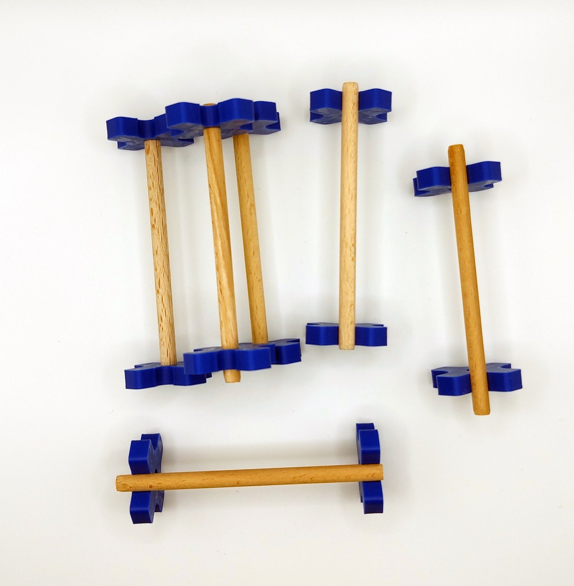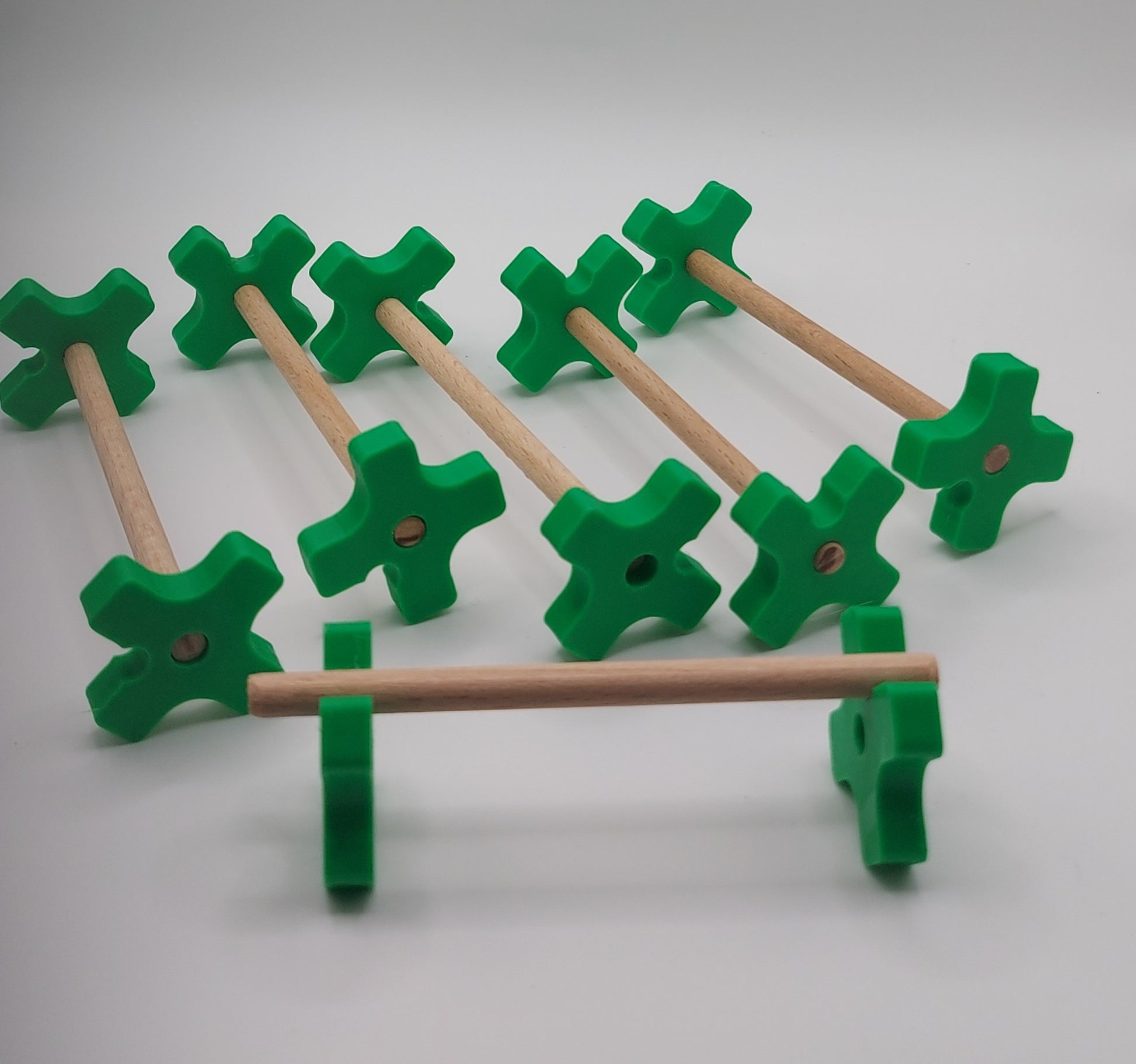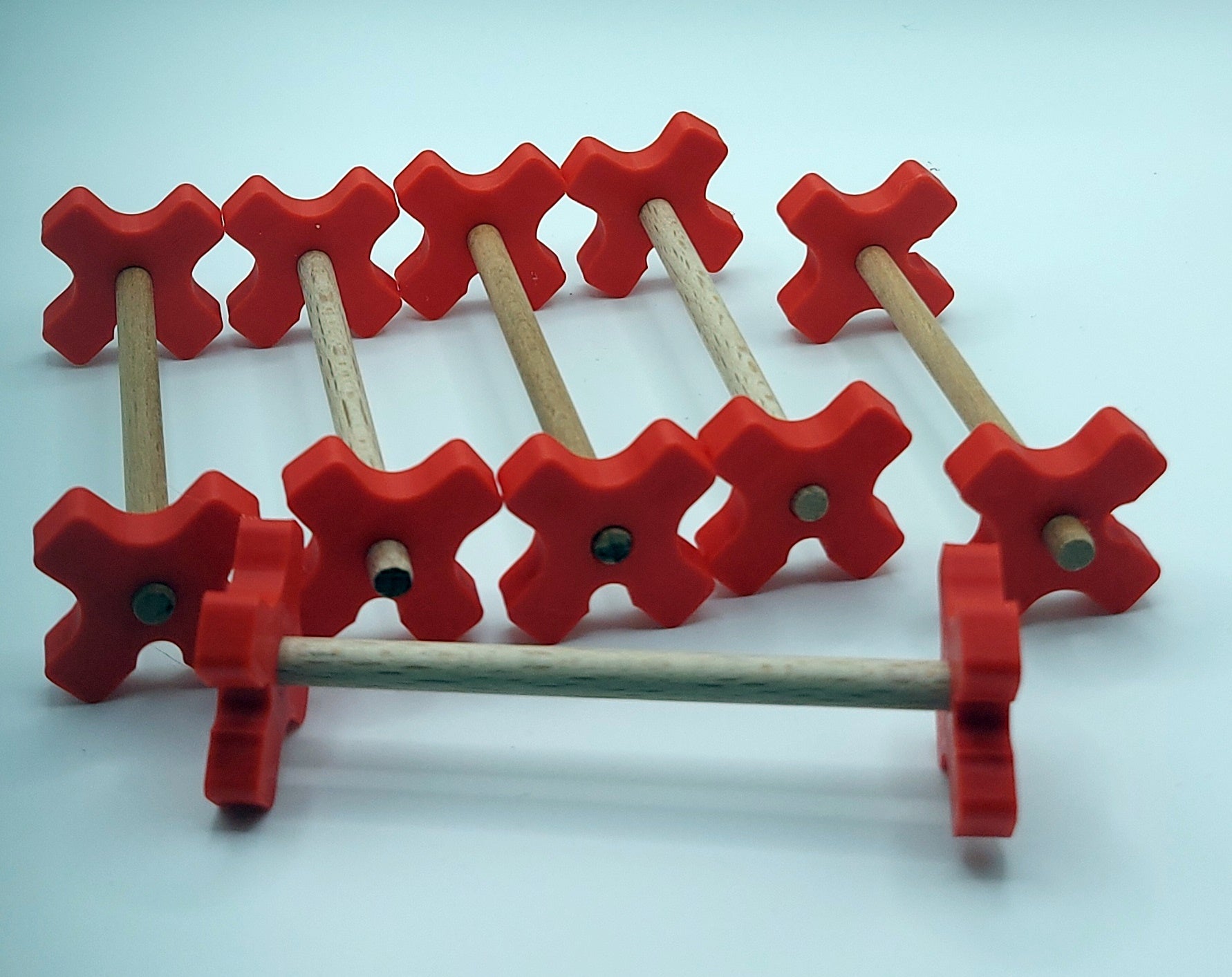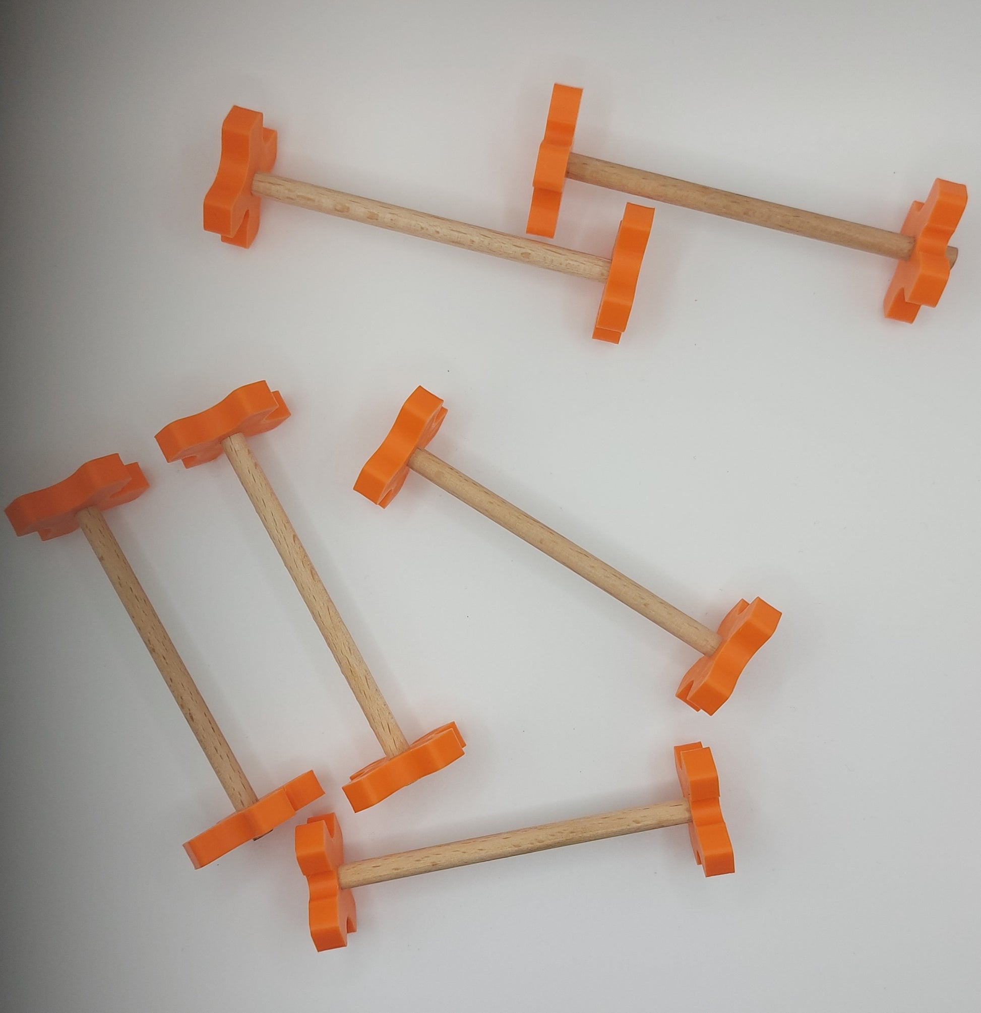 Die leichten Stangen aus Holz sind stabil und doch federleicht zu stapeln, sodass kleine Turnierparcours im Handumdrehen entstehen.