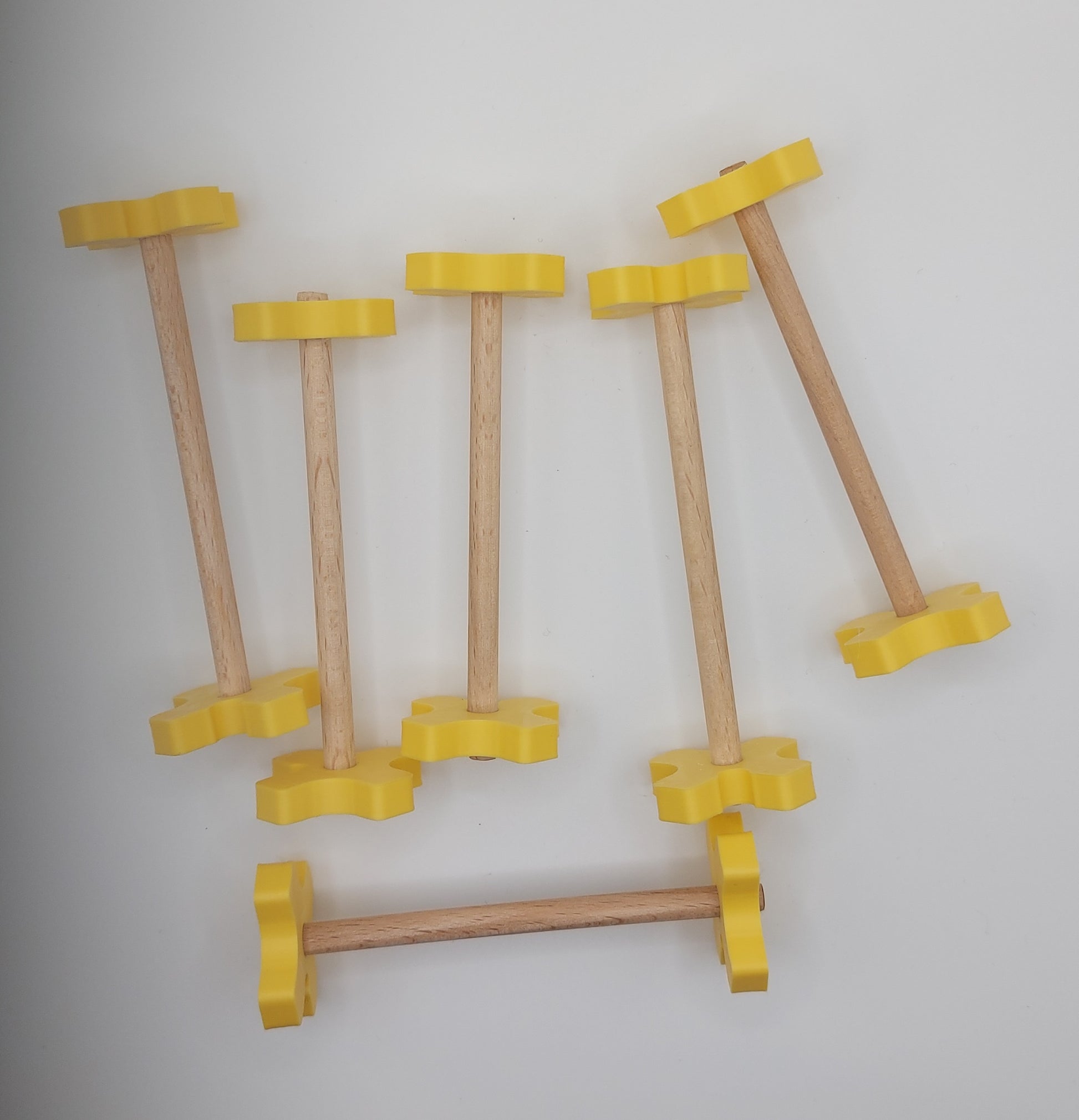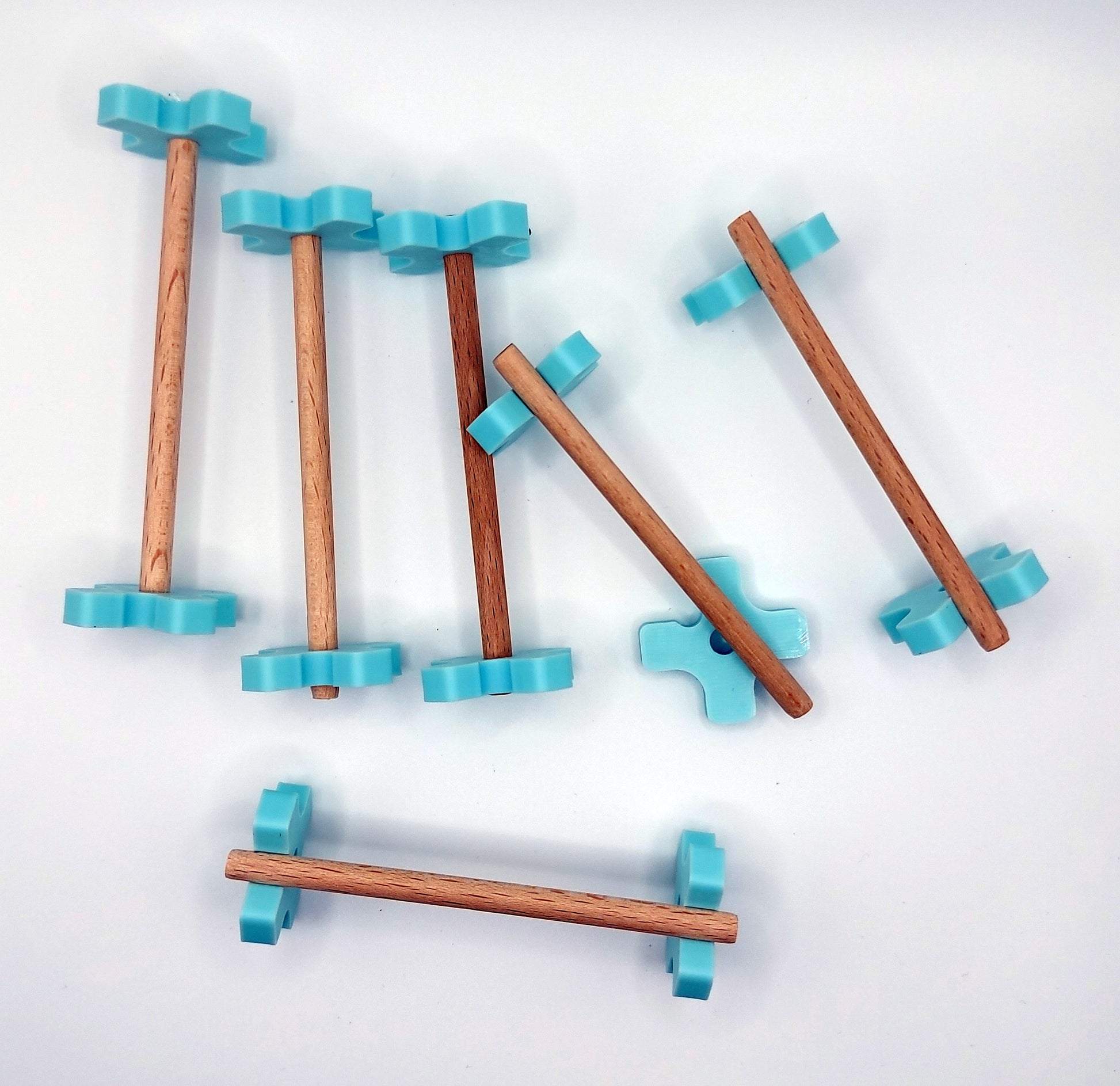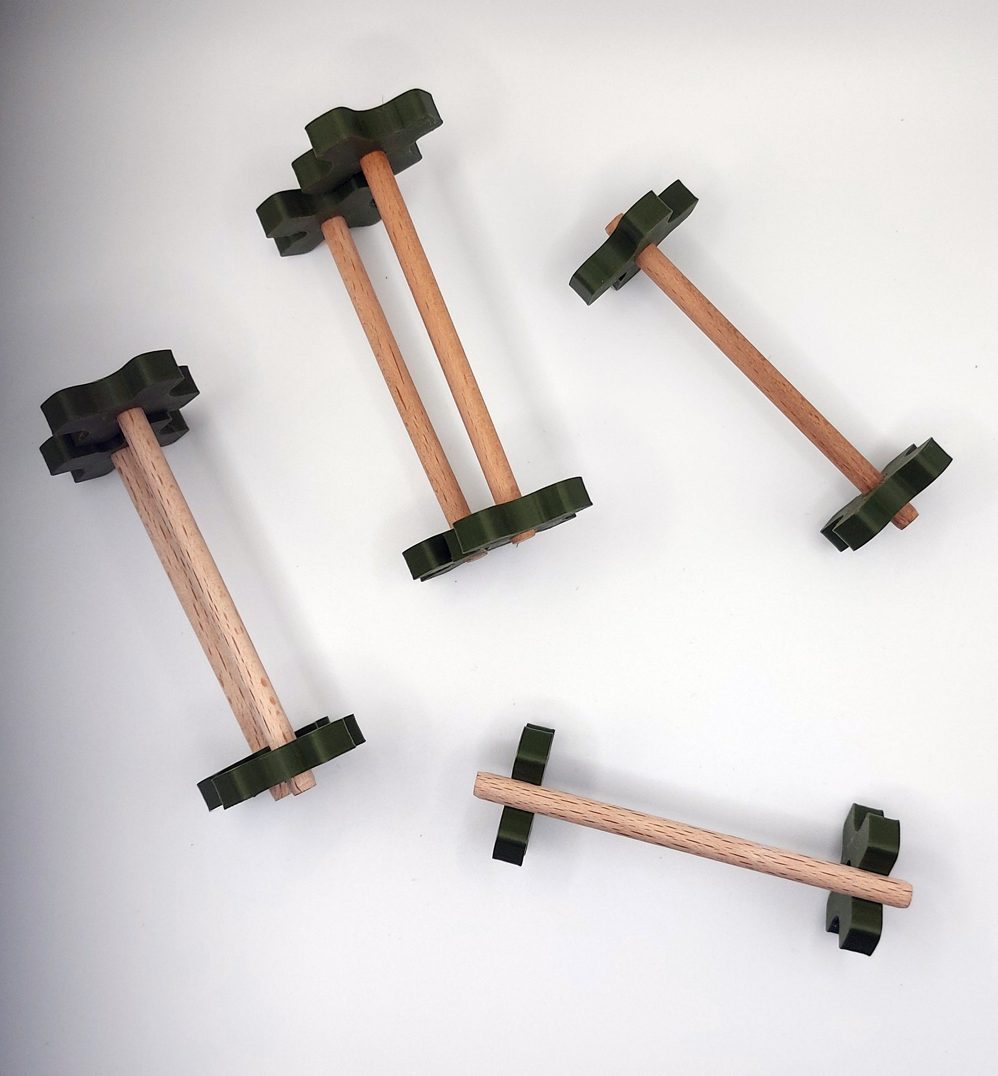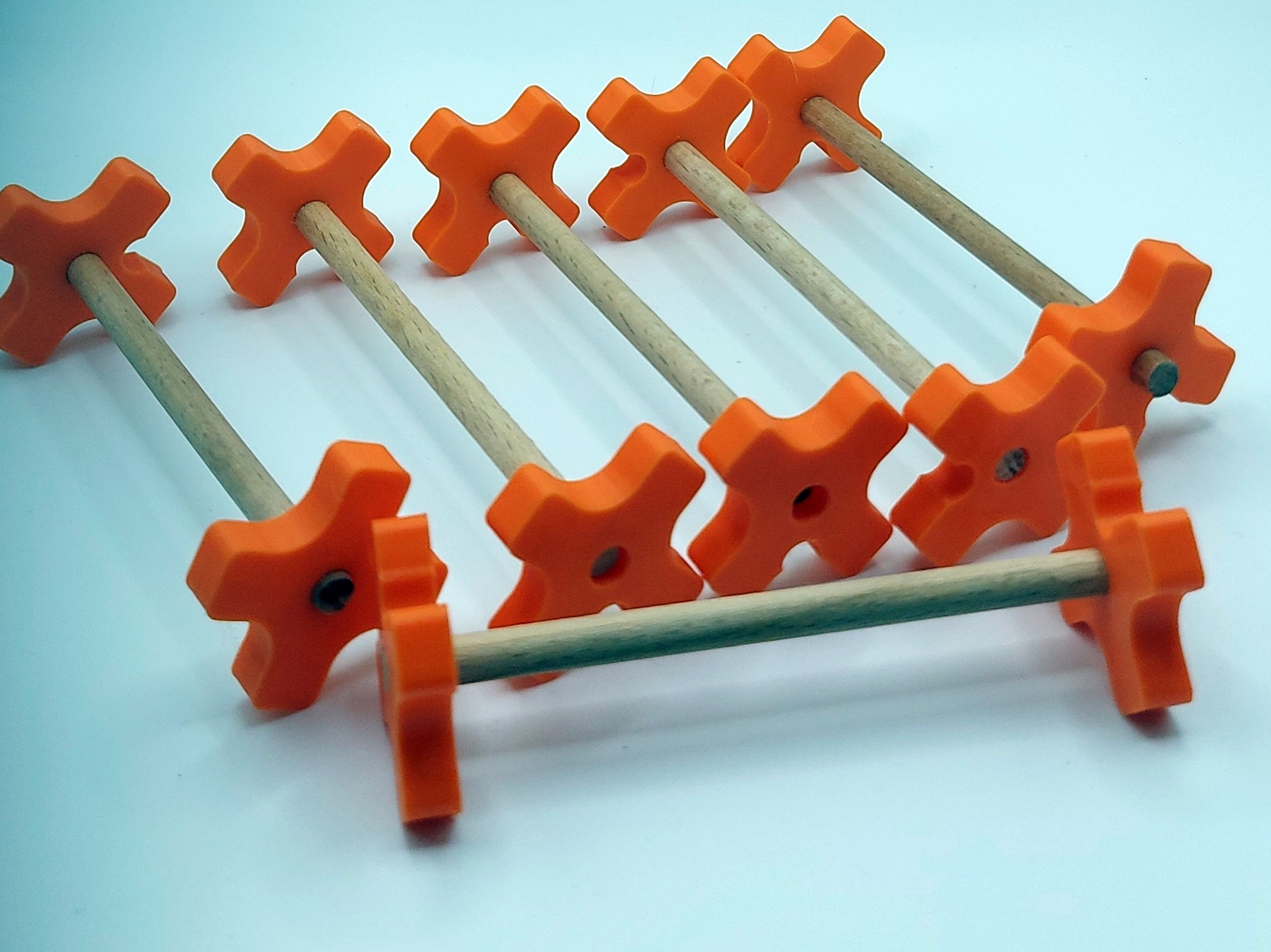 Die leichten Stangen aus Holz sind stabil und doch federleicht zu stapeln, sodass kleine Turnierparcours im Handumdrehen entstehen.