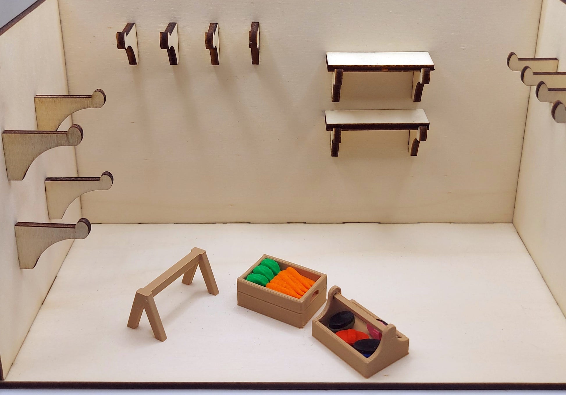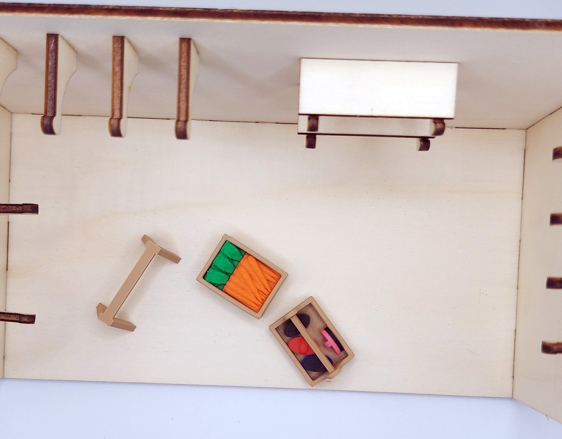 Die Sattelkammer wird geliefert mit 1x Sattelbock, 1x Futterkiste mit Möhren und 1x Putzkiste welche 4 Pferdebürsten beinhaltet. Alle Artikel sind mit großer Liebe zum Detail hergestellt, um ein authentisches Spielerlebnis zu garantieren.